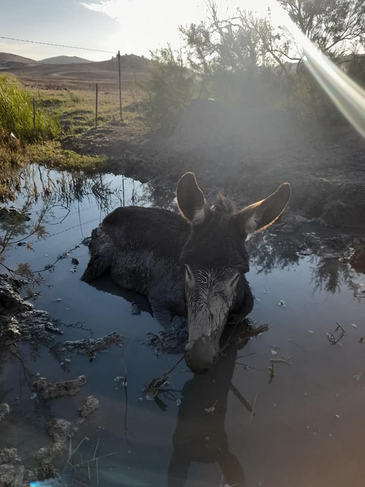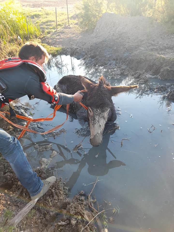Paseaban en quad entre las localidades gaditanas de Medina Sidonia y Paterna de Rivera se encontraron este fin de semana a un burro atrapado en un gran charco de barro. Sin pensarlo ni un instante, buscaron la forma de ayudarlo a salir, para salvar la vida del animal.