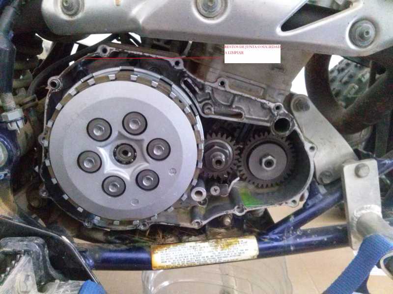 Con una lija muy fina tipo esponja o con el tipico astropajo verde de los platos y un pelin de gasolina nos ayudara a sacar mejor la porqueria aderida, eso sera muy importante dejar lo mejor posible ya que cuando mejor y plana cierre la junta mejor estanqueidad tendremos y nos ahorraremos posibles fugas y tener que desmontar otra vez.