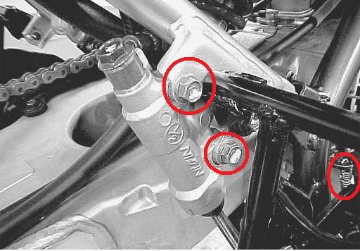 3: Destornillamos la bomba de freno del pedal que frena las ruedas traseras, y quitamos los muelles que sujetan el pedal y la luz de freno