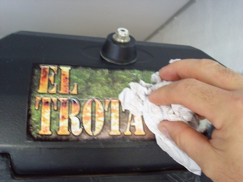Y colocamos el acdesivo frotando con un papel o trapo suavemente para no dejar burbujas de aire, y si quedaran se pinchan con un alfiler y se frotan con papel o trapo sin apretar.