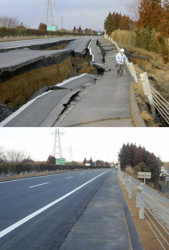 [b]El terremoto que sufrió Japón el 11 de marzo arrasó una sección de 150 metros de la autopista Gran Kanto en Naka.