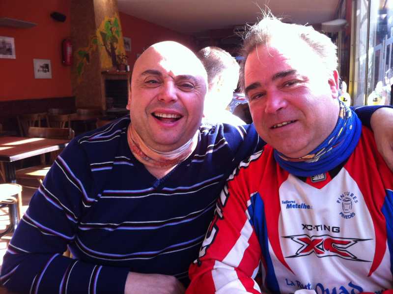 hemos salido de casa a las 10 hasta st sadurni , almuerzo en la terraza del cava , luego hemos continuado hasta villafranca para confirmar la ruta y de vuelta hemos parado en la granada en casa de rafa 800 a tomar una copita de cava . yo he vuelto por carretera por cuestion de tiempo y piza por caminos.