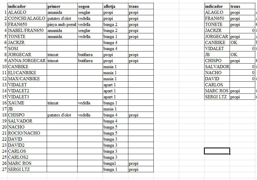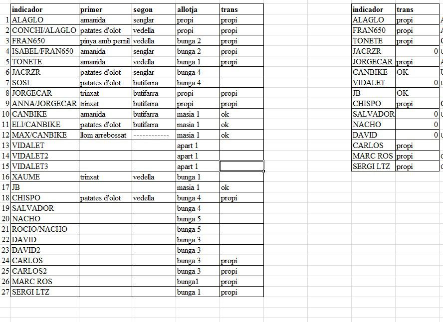 11: Eli: patatas olot,butifarra va con canbike, 2 dias