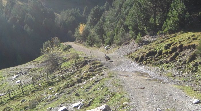 Y asi xino xano a ritmo muy lento nos fuimos aproximando al Refugi Forestal Pla de Satlla donde vimos dos enormes buitres en medio del camino, apenas pudimos hacer una foto a uno de ellos.
