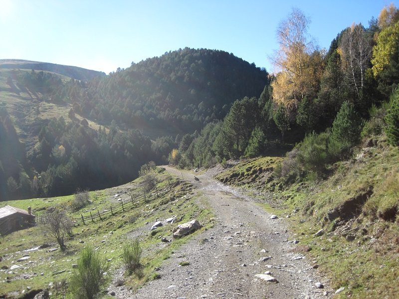 enlazando con la pista de Tregurà llegaríamos a Setcases, Esta es una pista ancha casi es una carretera forestal, en el principio esta cementada unos dos Km., tendríamos vistas de Montserrat (si el dia es claro) de la cara norte del Taga, de la cara sur del Pic de Bastiments (2883 m. altitud), alcanzando la cota 2000