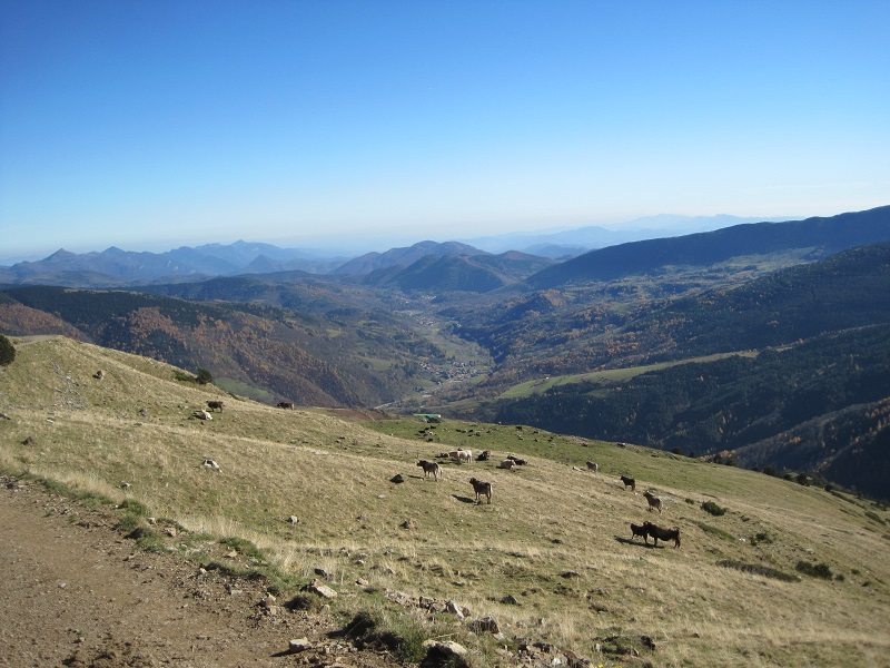 Y desde el Coll de Meianell fuimos bordeando la cara sur de la Serra de la Canya y la falda sur del Balandrau en dirección a Tregurà, con la fortuna de ir encontrando algunos “mulats” y unas vistas excepcionales de la Vall de Camprodón y las montañas de la Garrotxa.