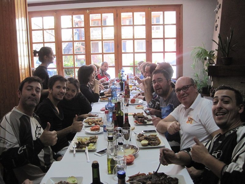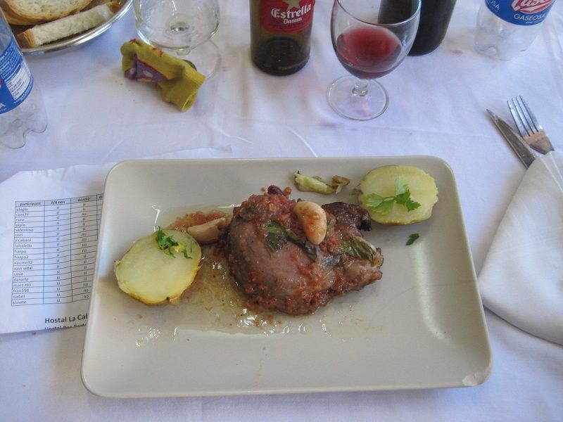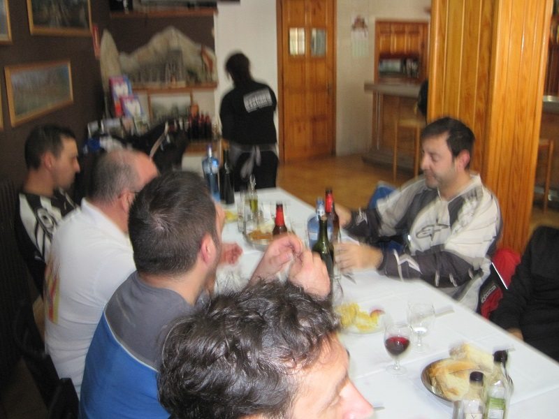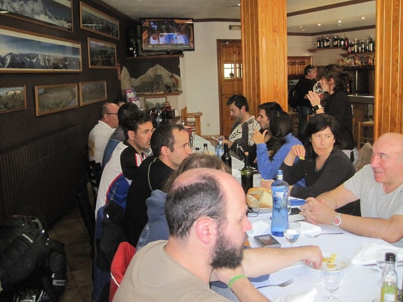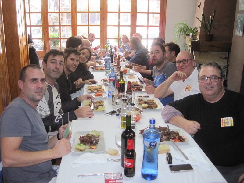 Y nos reunimos en Tregurà y desde alli por asfalto nos fuimos al restaurant la Cabanya donde con puntualidad britànica entramos a las 14:30, Rosa ya nos esperaba y nos habia preparado una mesa para comer todos juntos y que “no faltara de ná”.
