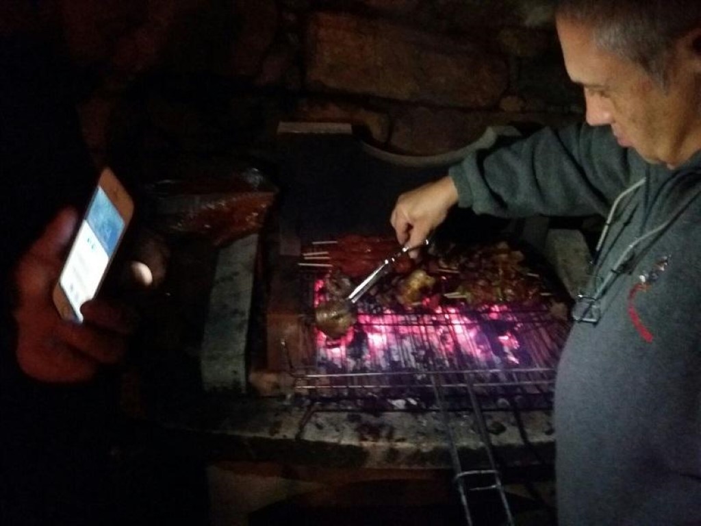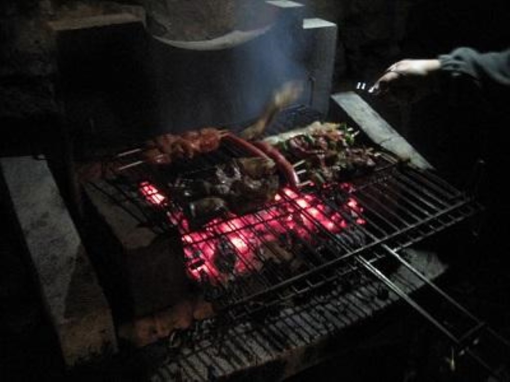 Para esta barbacoa nocturna alegre y divertida cada cual aportó algo, lo que pensaba que comería y bebería, después se asó todo junto y se empezó a compartir y degustar los choricillos, el morro, la panceta, butifarras, secreto,… aceitunas, cocas de perafita, vino, refrescos, cava, …
