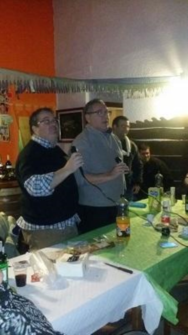 Y despùes, con la gana saciada Chispo montó el gran festival con el Karaoke, donde nos lanzamos cada cual según su arte a cantar, a veces en solitario y a veces en grupo, a veces con risas y comentarios alegres y divertidos otras con aplausos.