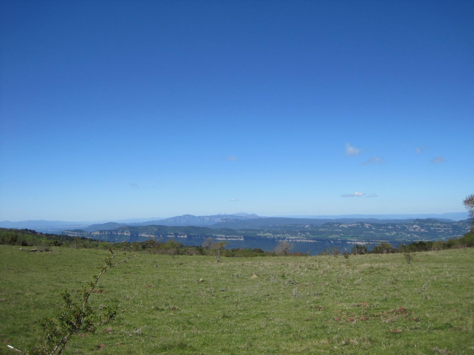 Y cruzando el pla de la Calma, nos llegamos al famoso Pla del Café o “El Café” donde se tienen unas estupendas vistas del macizo del montseny (Matagalls, Agudes, Turó de l’Home, ..) por un lado y por el otro, els Cingles de Bertí, la Serra de l’Obac i la montaña de Montserrat.