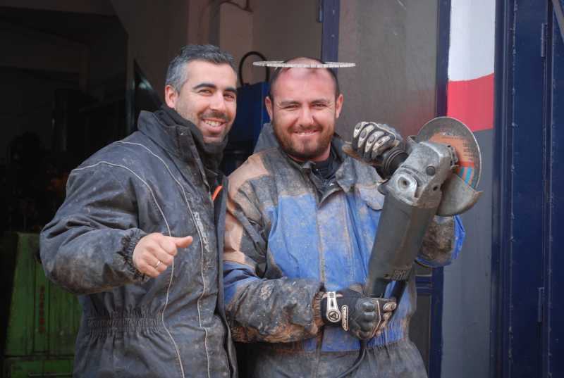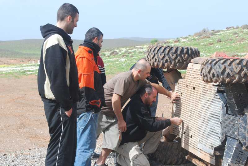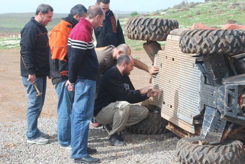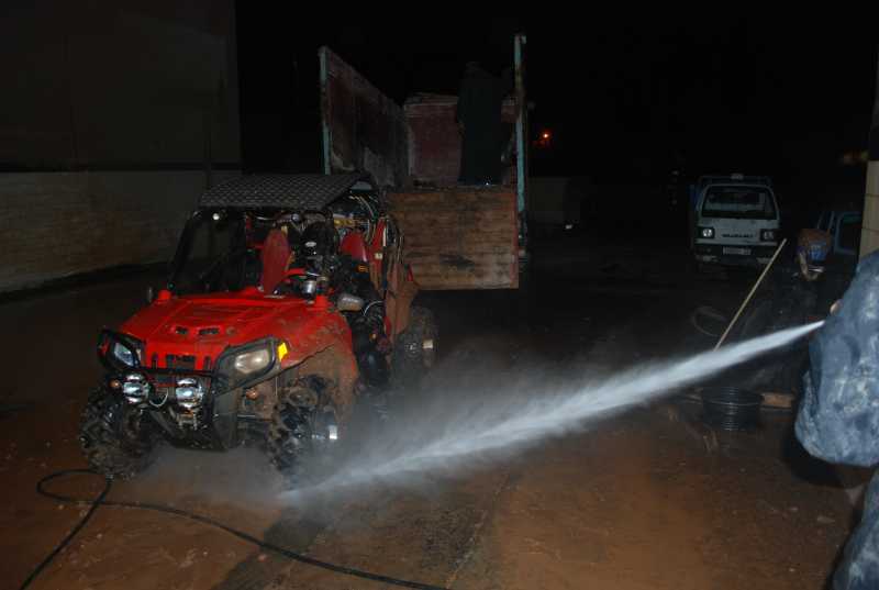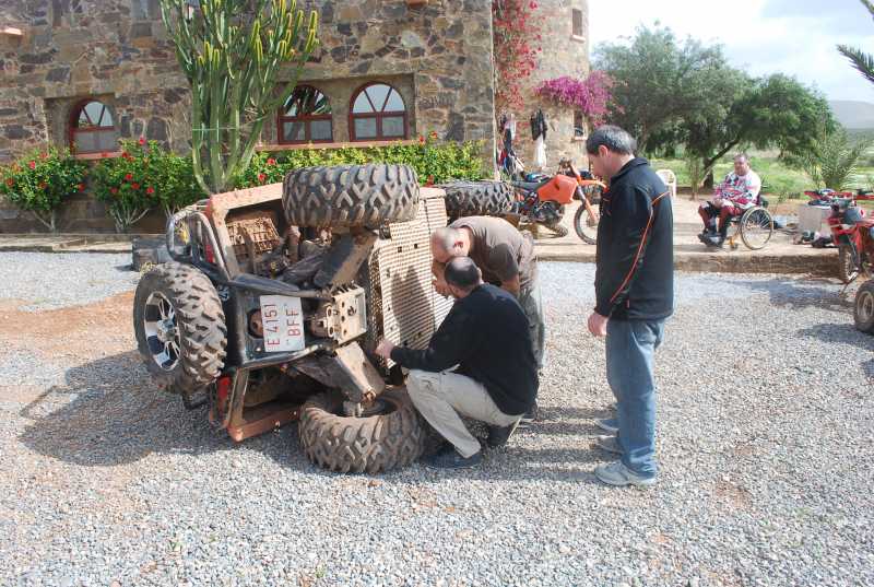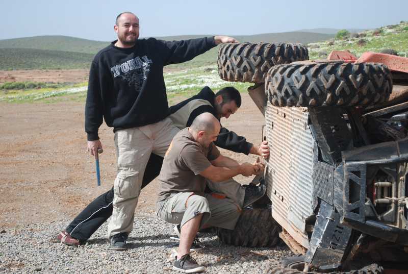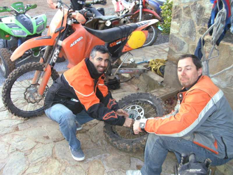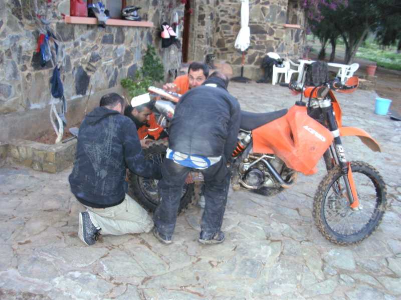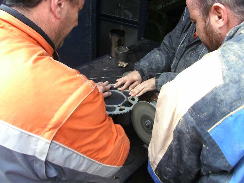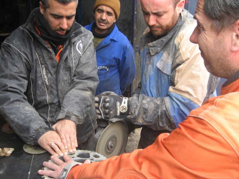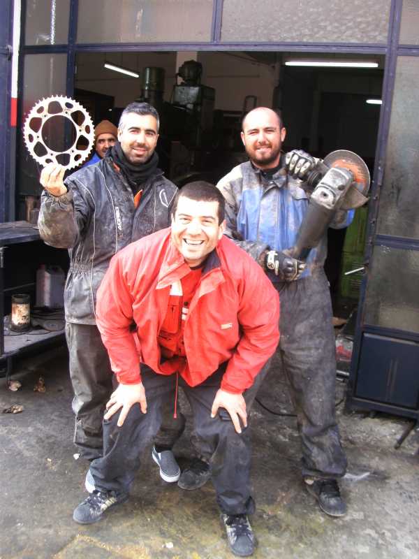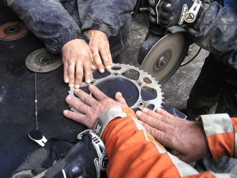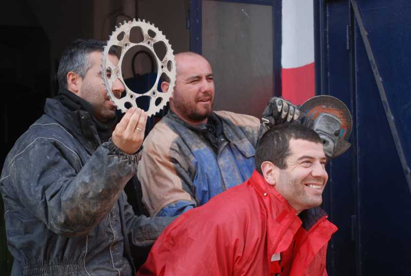 Mi RZR hay que reparar y sujetar la plancha de los bajos, y una moto hay que reparar en lo que se pueda su corona, que se quedo casi sin dientes a si que los técnicos en vista que no tenían ninguna nueva ni posibilidad de comprarla decidieron restaurarla y afilarla, jejejejeejej
