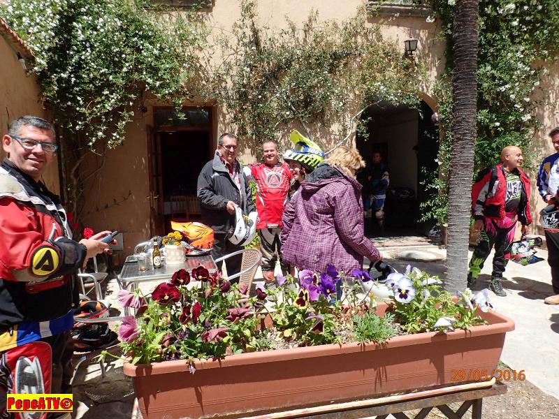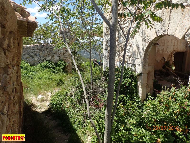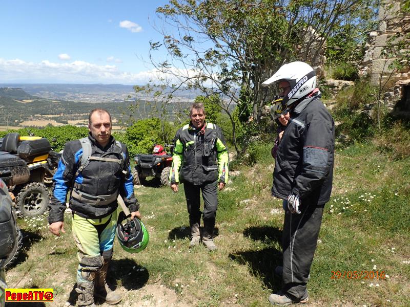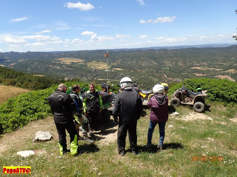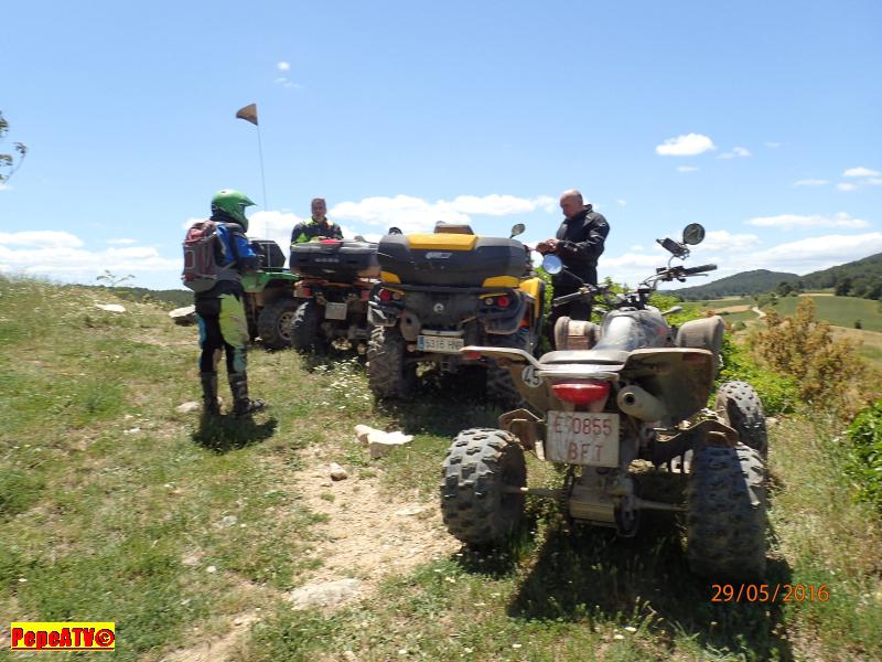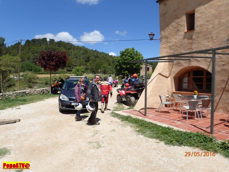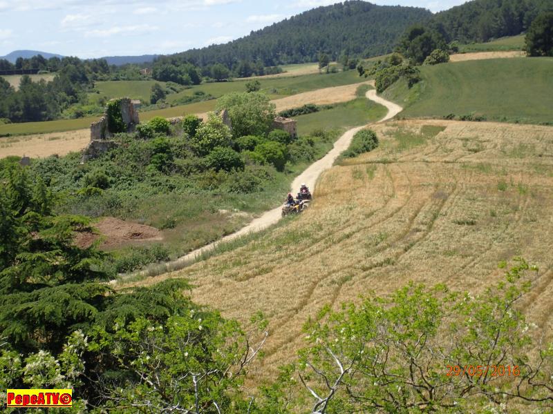 Enseguida enlazamos con el track de vuelta de BALTA y nos sorprendió ver a los compañeros que salieron delante nuestra en el restaurant y que aparecieron al rato de estar parados disfrutando de unas vistas geniales en una masía en ruinas.Les hicimos señales desde la lejanía y vinieron raudo a ver que se divisaba desde aquel promontorio elevado y privilegiado donde está emplazada esta masía.
