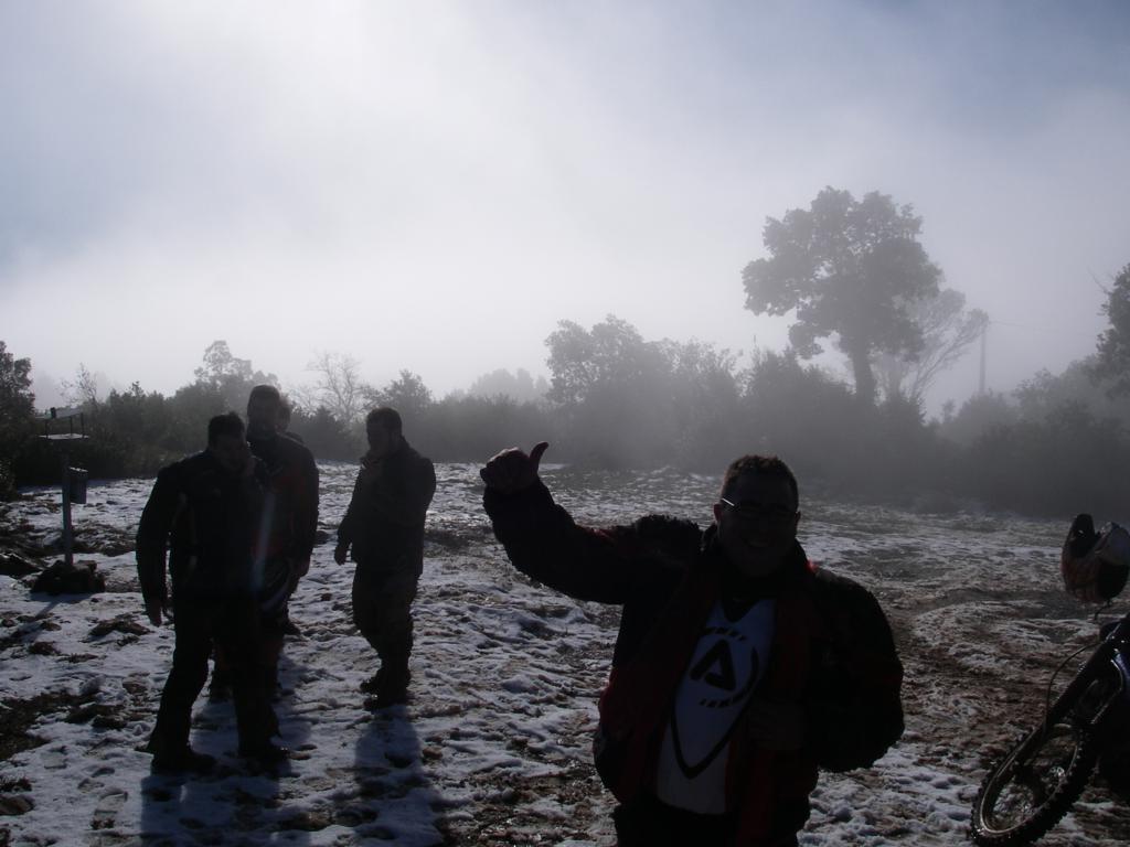 GIO a bolazos de nieve con la peña en la subida al Puig Castellar.