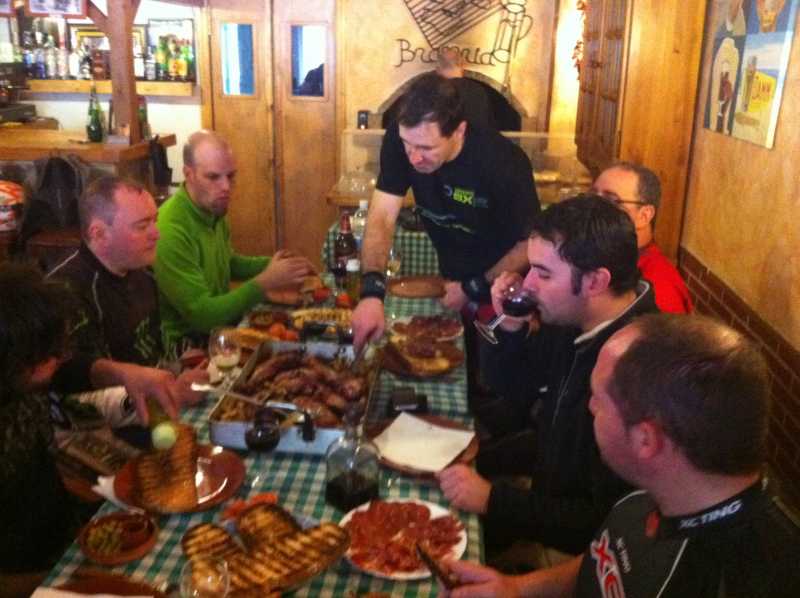 Tras salir en cuatro grupos un pelin mas tarde de la hora prevista, nos hemos zumbado una ruta guapa, guapa, con el tramo extra de Balta unos 35 km ha quedado espectacular. Hemos llegado al Garbanzo a las 10:30 con 70 km desde Sant Sadurni para pegarnos un super desayuno de piernas de cordero que alucinas.