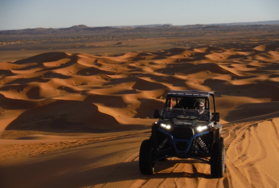 DIA 27 – Primer día de Buggy, salimos dirección sur por pistas desérticas, palmerales i Oasis, comida a medio día en Erfoud, por la tarde llegaremos a pie de las espectaculares dunas del Erg Chebbi, subiremos a lo alto de una duna para contemplar una espectacular puesta de sol. Noche a pie de dunas en el Hotel Tomboctou o similar.